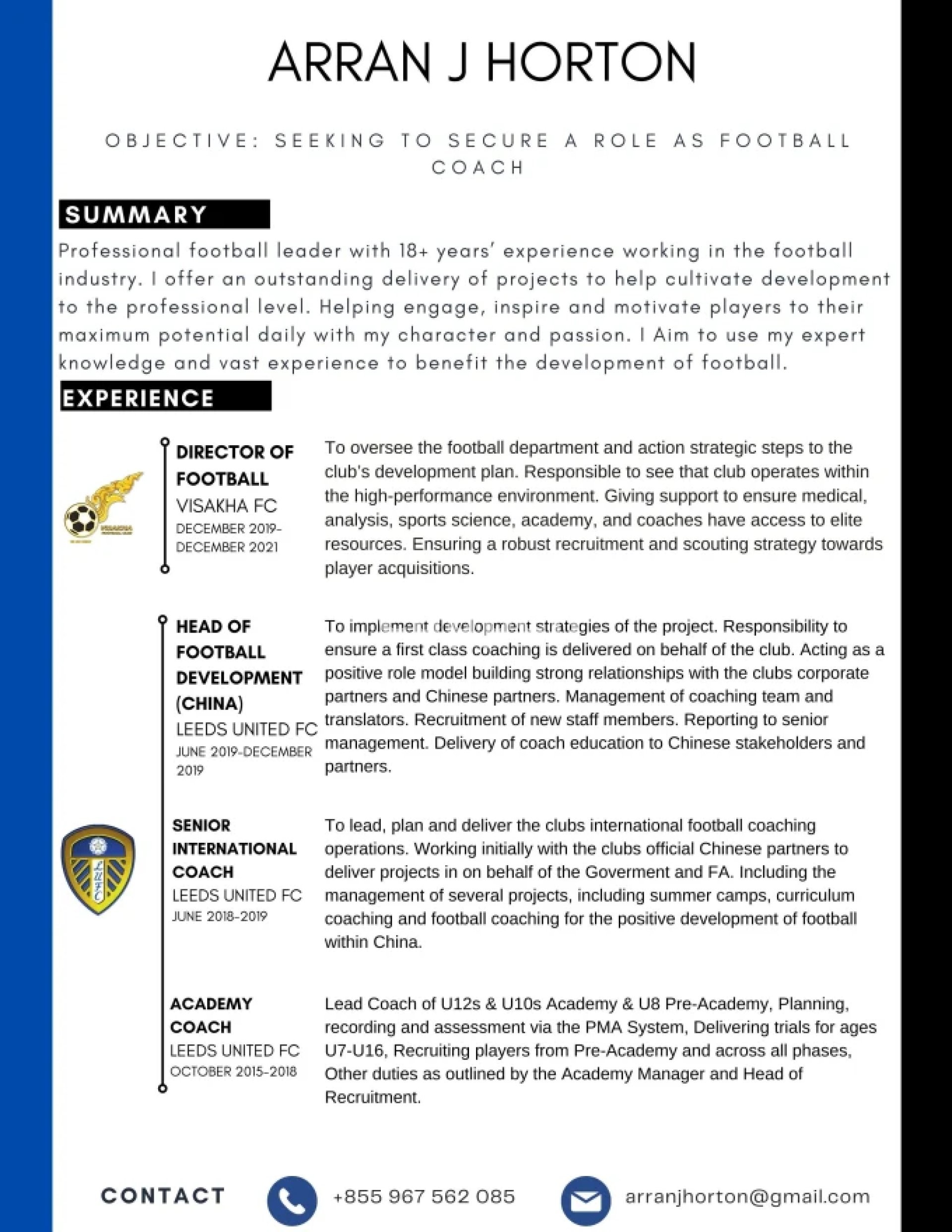 Are you prepared to make a lasting impression on football clubs and potential employers? With over two decades of experience in the field, I specialize in creating high-quality soccer/football resumes that leave a lasting impact.