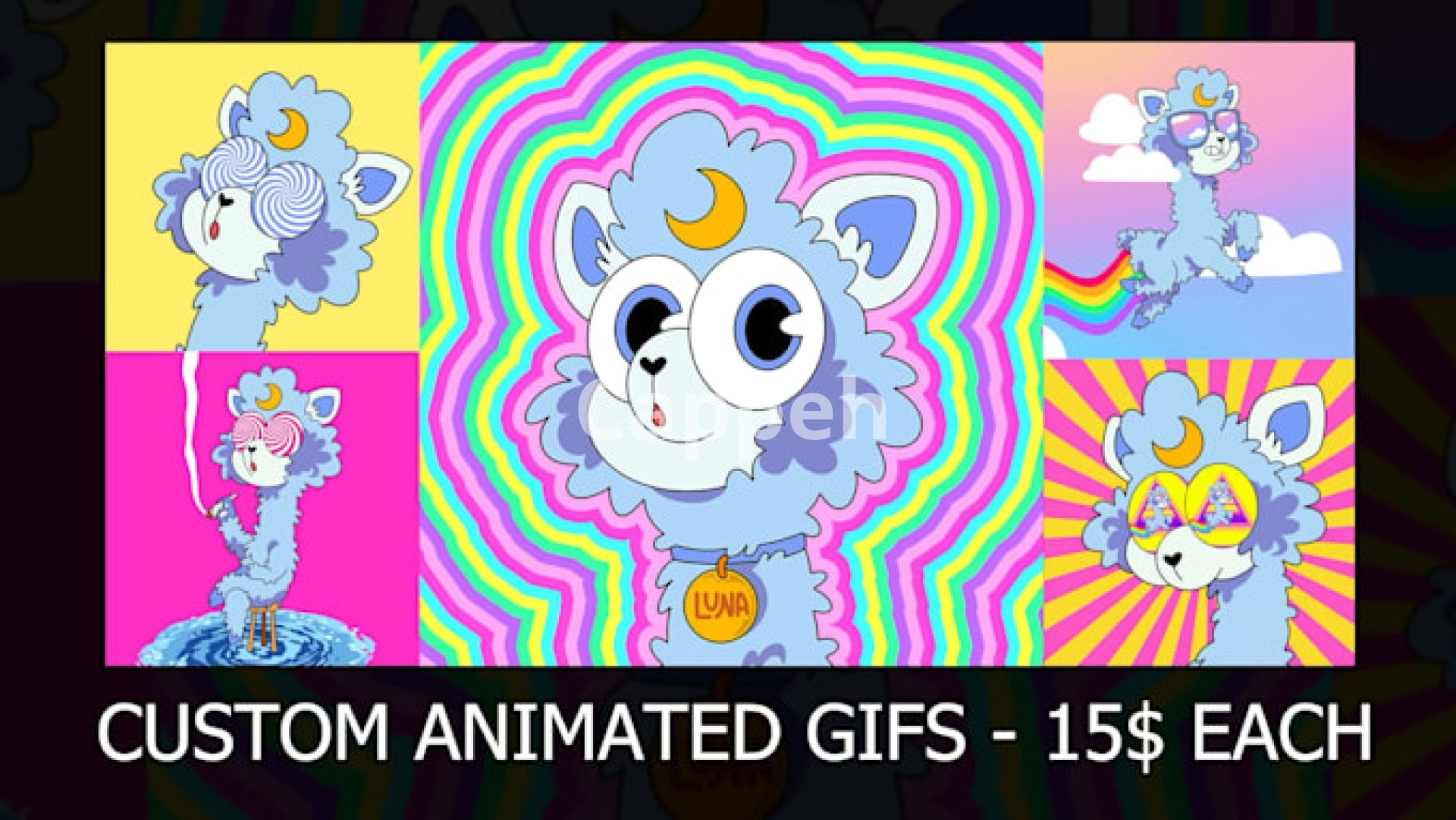 I also offer Custom High-Quality GIFs, where I animate elements like the background, accessories, etc., of your existing character. The cost for this service is $15 per GIF (Please contact me if you require something similar).
