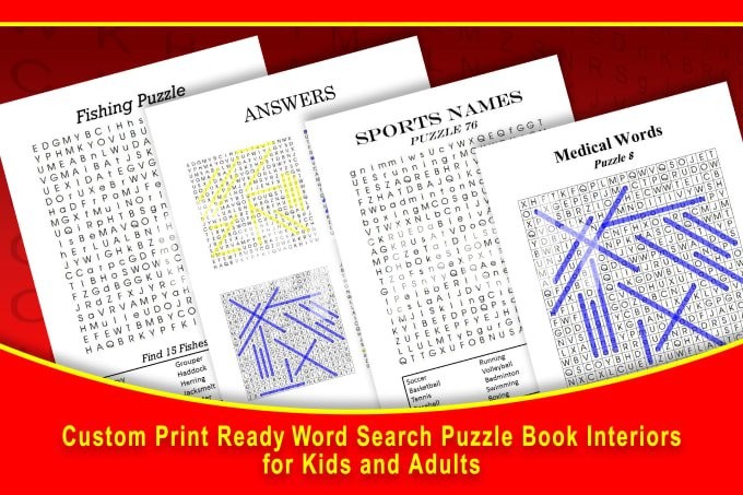 Introducing the service of creating custom word search puzzle book interiors with covers for kdp