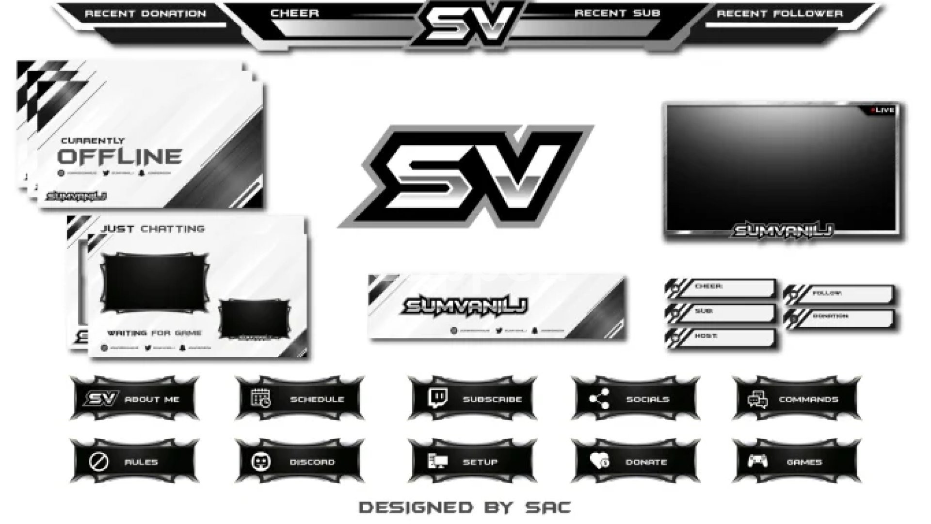 You've arrived at the right place if you're in search of a Clean, Modern, and Professional Twitch Logo Design, Custom Professional Twitch overlays, Screens/Scenes, Banners, Panels, Custom Alerts, or Twitch Branding.