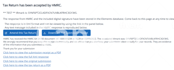 HMRC Unique Taxpayer Reference (UTR).
