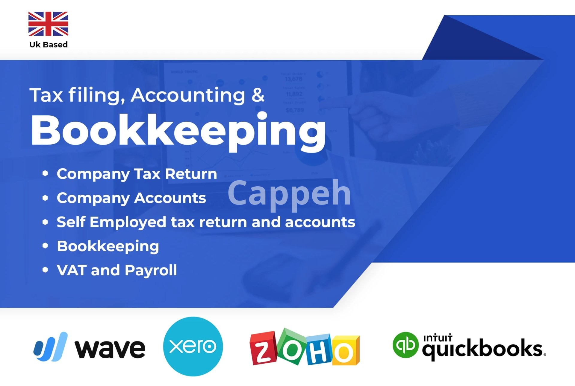 Bookkeeping services utilizing various platforms such as Xero, QuickBooks, Zoho, FreeAgent, or spreadsheets.