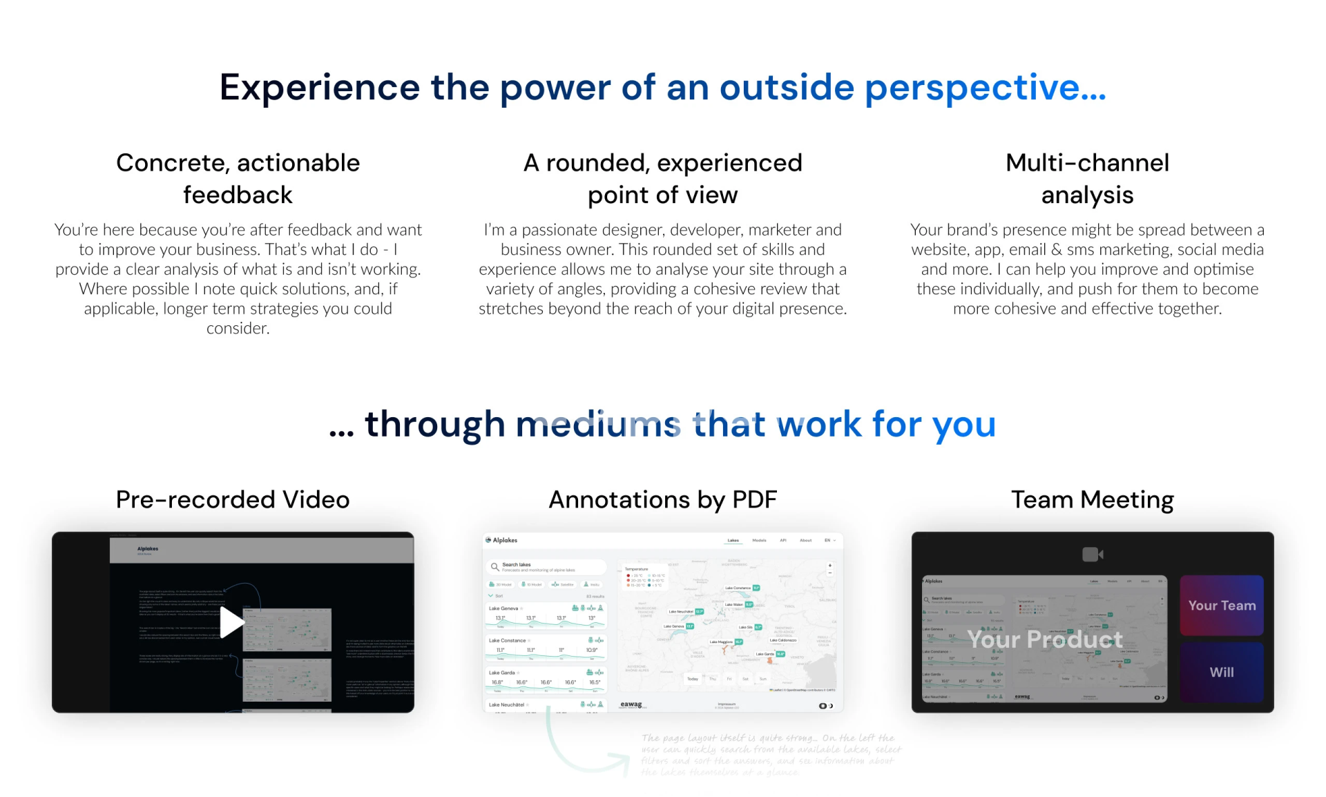 Our service offers a comprehensive analysis of your website or app, focusing on implementing effective improvements to enhance usability, aesthetics, and overall user satisfaction. You will receive in-depth feedback tailored to your preference, whether through annotated screenshots or follow-up consultations, providing your team with clear guidance to effect meaningful changes. Our aim is to optimize your digital platforms for your primary goals—be it higher conversions, increased engagement, or an improved user journey.