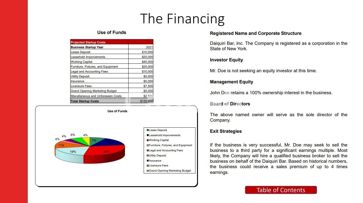We collaborate closely with you to design a business plan that aligns with your company's specific capital raising requirements. Additionally, we can adapt the plan for other objectives such as immigration purposes or to present your operations to prospective landlords. Each plan we produce complies with the specifications set by the Small Business Administration. Our plans include the following chapters: