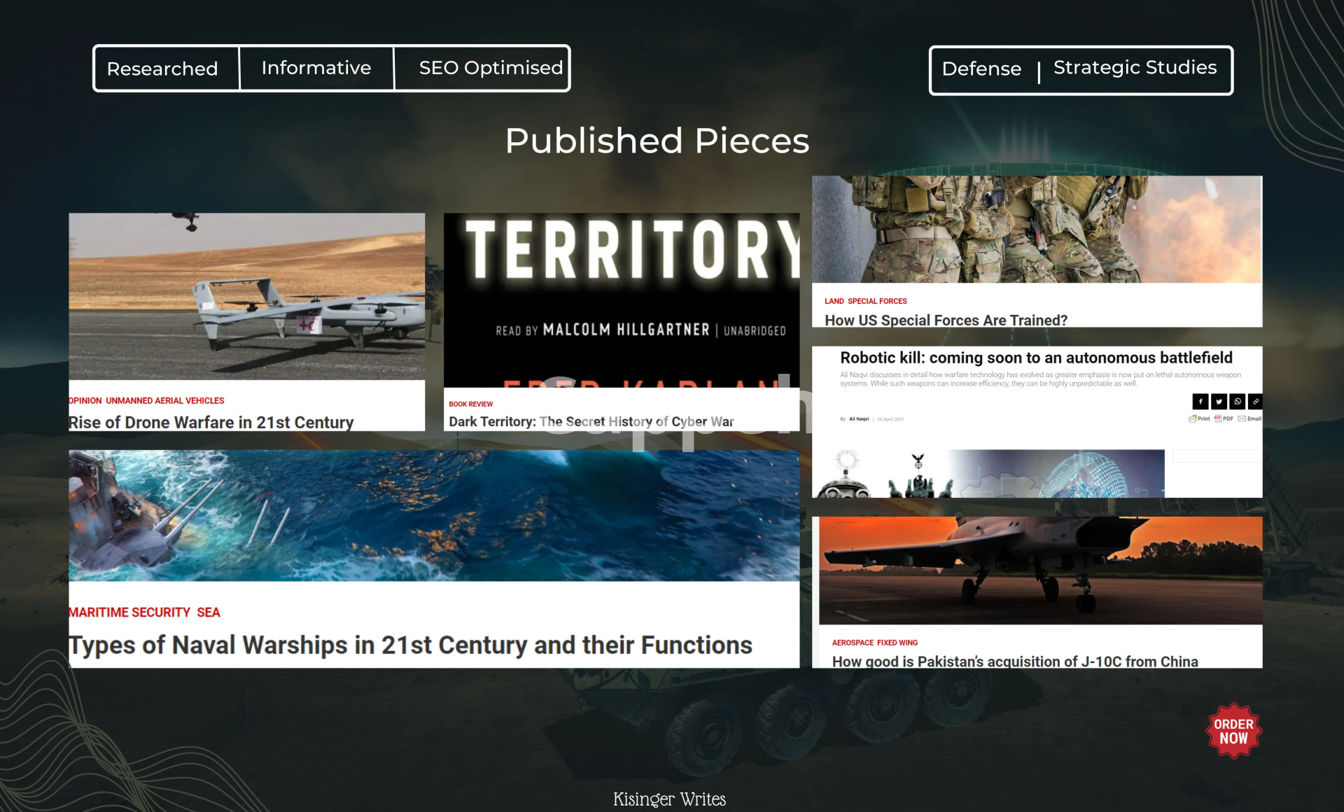 Are you seeking a seasoned and professional content writer specializing in defense topics for your blog or website? Look no further. With extensive experience in the defense sector and a dedicated team of experts, I am poised to deliver exceptional content tailored to your needs. My academic background further equips me to offer insightful and comprehensive articles on military and defense subjects.