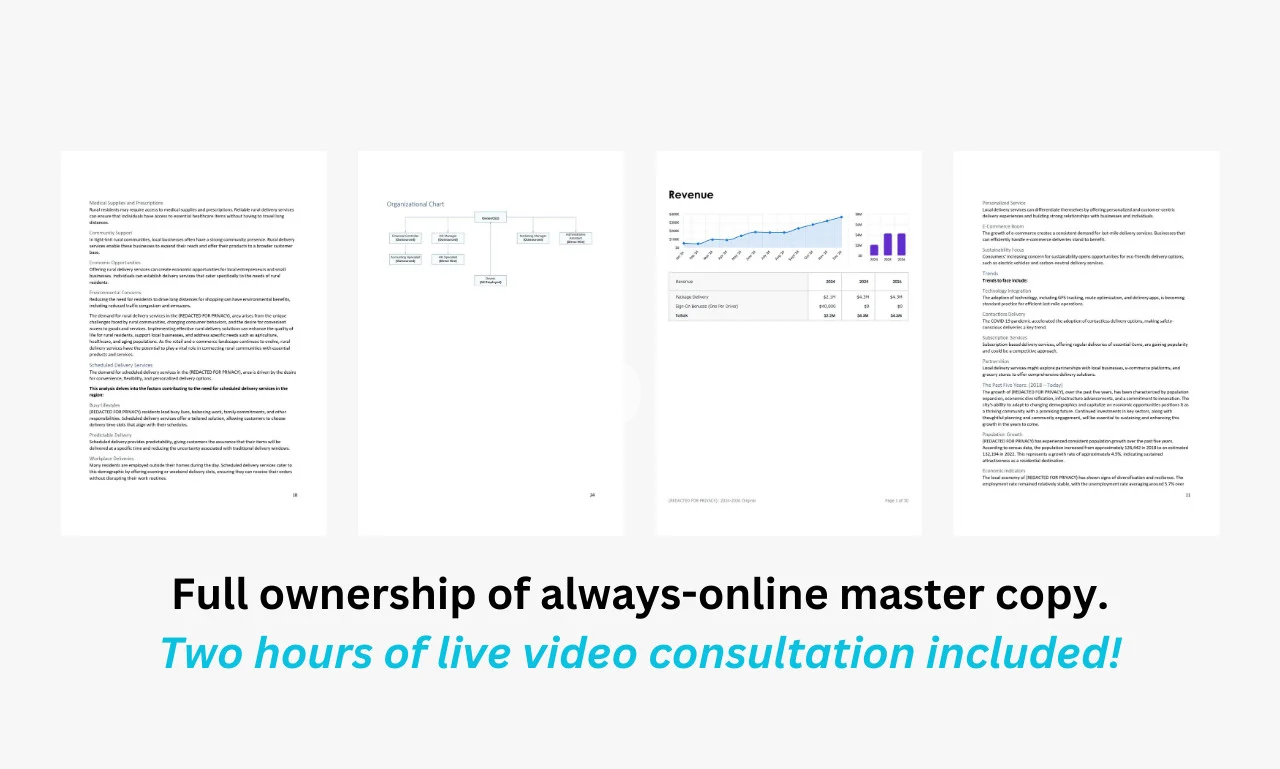 Custom Business Plans: Each plan is uniquely tailored to suit your specific startup concept, ensuring alignment with your objectives, market opportunities, and investor expectations.